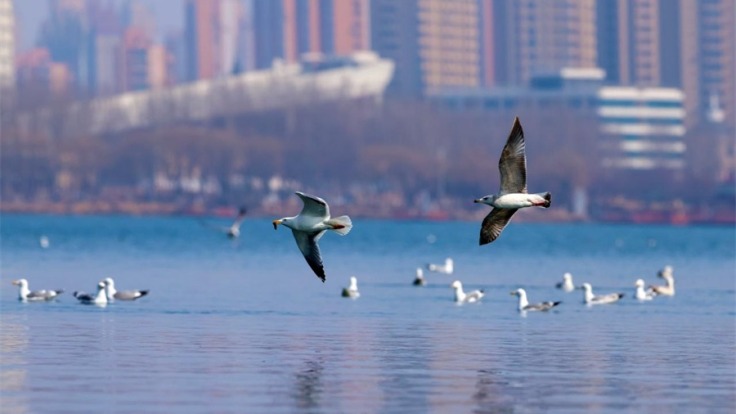 辽宁盘锦:约200只斑海豹享受“日光浴”