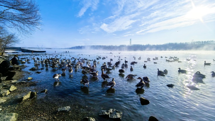 冰雪奇观:“红滩卧雪”
