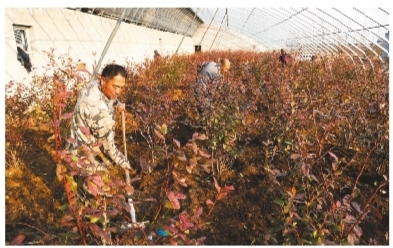 眼下,葫芦岛市连山区海滨种植专业合作社社员正在大棚里忙着移植蓝莓树苗。该合作社投资500多万元,在22公顷土地上建了11个高标准温室大棚,主要种植蓝莓、葡萄、樱桃等新品种水果。该种植项目达产后将以分红的形式,带动连山区锦郊街道刘台村87户建档立卡贫困户脱贫。(杨兵 摄)