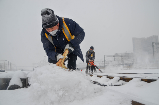 2月14日9时起,辽宁、吉林两省大部分地区普降小到中雪,局部大雪。中国铁路沈阳局集团有限公司及时启动黄色预警和除冰除雪应急预案,组织铁路沿线各单位提前准备除雪工具,机车安装金属滑板,轨道车启动热备,组织干部职工昼夜清扫道岔、道口等重点处所积雪,全力确保铁路运输畅通。