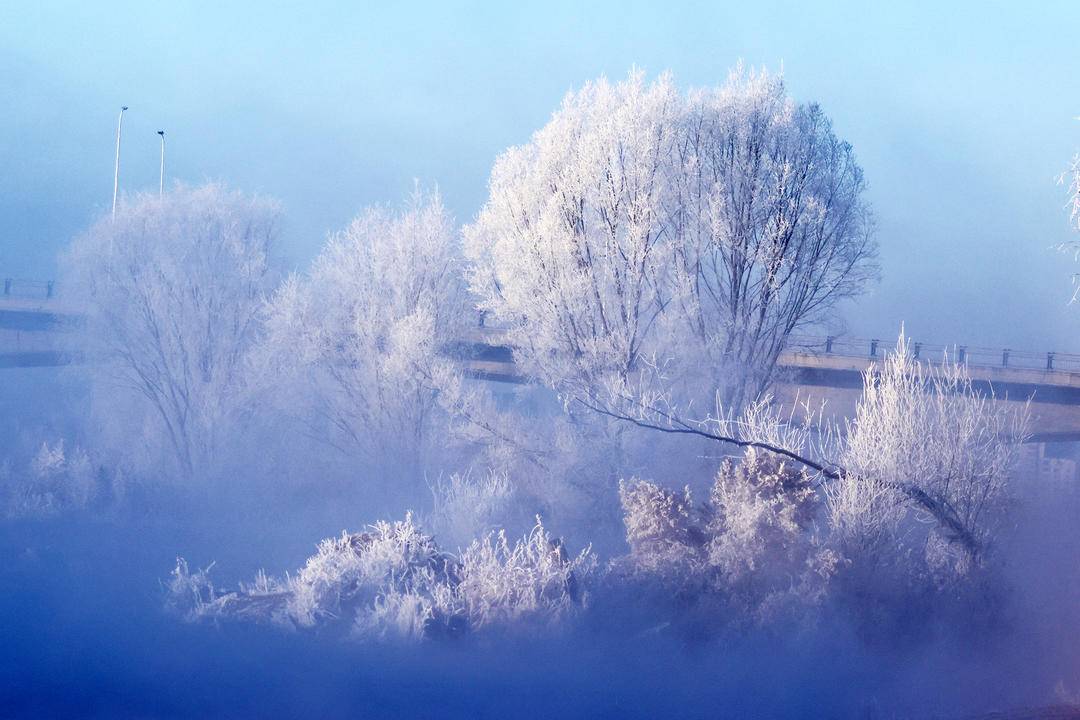 1月2日,朝阳市双塔区大凌河下游出现大面积雾凇。当日,清晨的大凌河畔,玉树琼枝、银装素裹的景象为新年开篇增添了一抹纯净而瑰丽的色彩;雪白的丛林中,忽有鸟儿飞过,雾凇片片随风散落,在阳光的映射之下,生机无限格外的赏心悦目,吸引着众多的摄影人和市民前往拍摄记录。(摄影:单国军 特约记者白铁军)