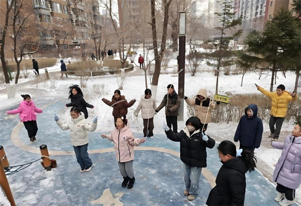 1月15日,沈阳铁路五校长白岛第一小学在寒假首日启动“绳子知道答案·段位绳”主题社区体育活动,全校近千名学生、家长及80名教职工共同参与。活动在万科城社区多个公共广场及区域同步展开。