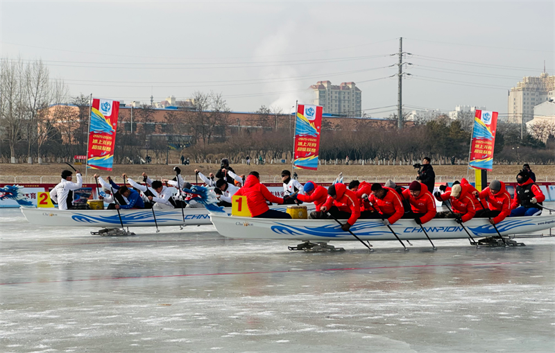 图为2025-2026冰上龙舟超级联赛朝阳站比赛现场