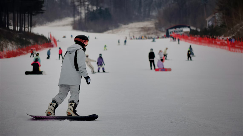 图为游客在丹东天桥沟滑雪场畅享冰雪乐趣