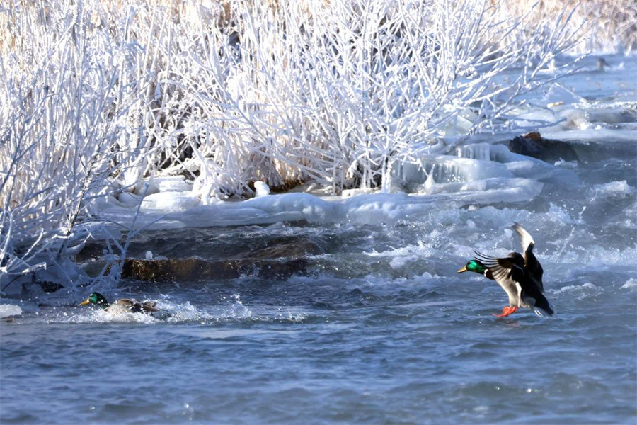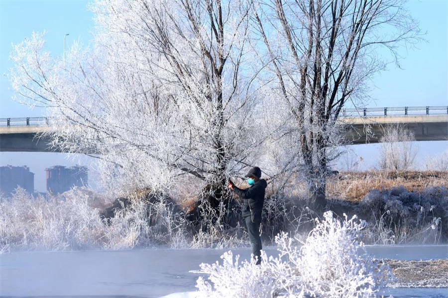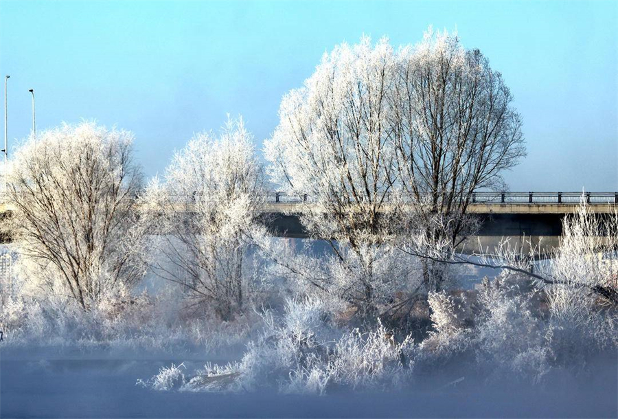 当日,一场大自然的冰雪盛宴——雾凇景观惊艳亮相,将冬日的凌河打扮得如梦似幻,为冬日增添了诸多灵动和诗意,一幅幅层次分明的冬日美景徐徐上演。(摄影:单国军 特约记者白铁军)