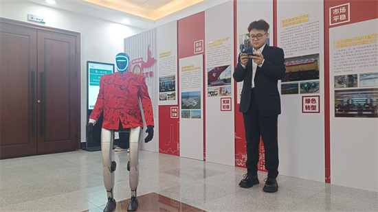 身穿红色唐装的具身机器人“铁柱” 供图 国网铁岭供电公司