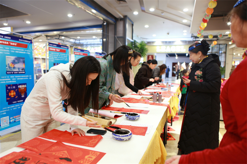 活动现场,舞蹈、模特走秀、合唱等一系列积极向上、欢快热烈的文艺节目轮番上演,用群众喜闻乐见的形式传递崇尚科学、反对邪教的正能量,充分展现了辖区群众健康向上的精神风貌,营造出喜庆祥和、文明和谐的节日氛围。此次活动将传统年俗文化与反邪教宣传教育有机融合,让群众在感受新春气息的同时,潜移默化地提升反邪防范能力。活动特别邀请市文联书法家现场挥毫泼墨,将反邪理念与新春祝福融入一副副春联、一个个“福”字之中,并现场向群众赠送“福”字,既传递了浓浓的新春暖意,也让“远离邪教、守护平安”的理念深入人心。