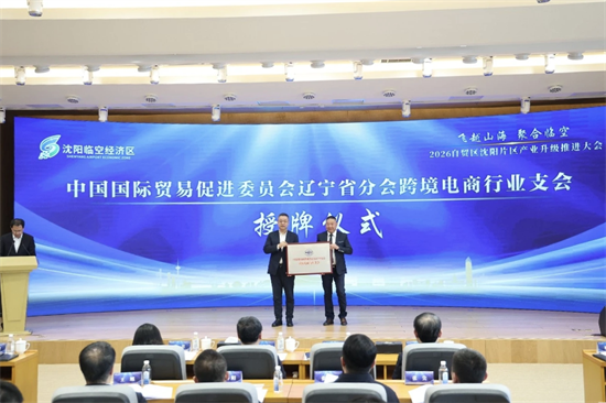 2月25日,2026辽宁自贸试验区沈阳片区产业升级推进大会在沈阳举行。会上成立辽宁省贸促会跨境电商行业支会,辽宁省贸促会党组书记、会长庞宝国为支会首任会长辽宁自贸电子商务发展有限公司董事长李军授牌。
