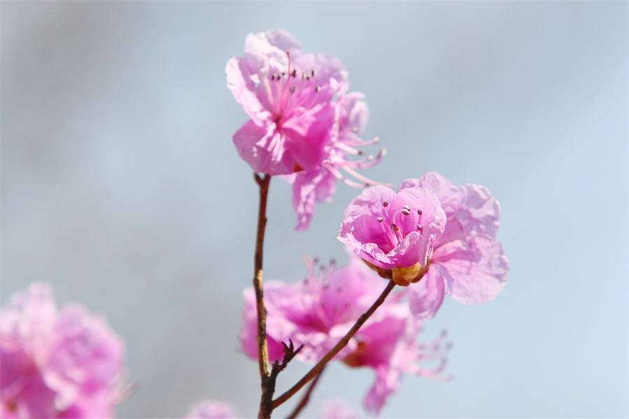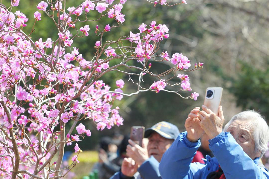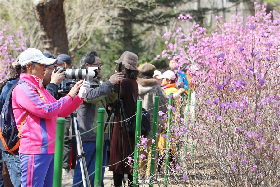 4月8日,春风拂面,沈阳市园林植物标本公园内,杜鹃花开得热烈烂漫。嫣红的花团缀满枝头,层层叠叠,在暖阳下格外明艳。漫步花间,清风携着淡淡花香,满眼皆是温柔春意。游人驻足赏花、轻按快门,用镜头定格繁花与春光。(记者 白琳 摄)