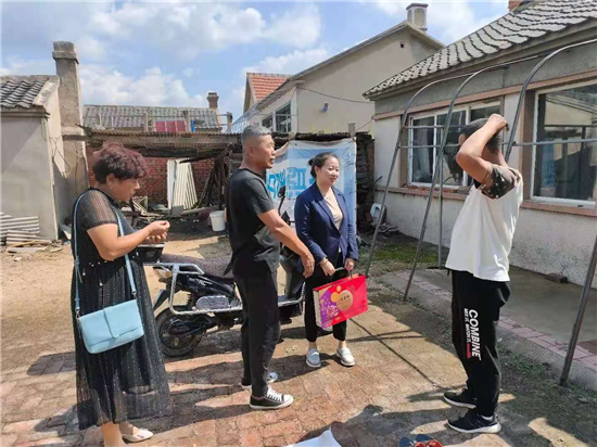国际在线辽宁频道消息:为了让沈阳市浑南区青草沟村的困难群众感受到基层党组织的温暖,过一个温馨的中秋佳节,近日,沈阳市卫健委派驻浑南区祝家街道青草沟社区的党支部第一书记于冰冰和村干部一起来到村内困难群众的家中,具体调研了各户的实际情况,并为村内的低保户、五保户和困难党员等8户百姓送上月饼、豆油等节日慰问品。