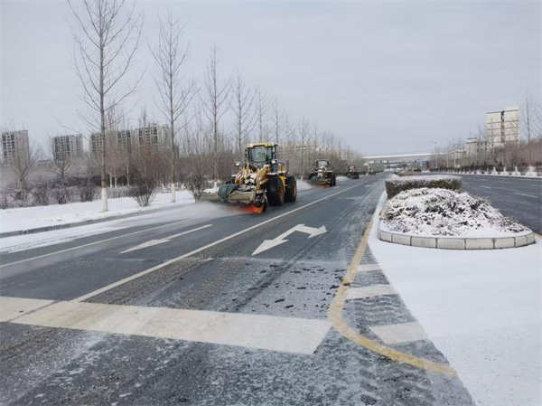 为防止道路积雪结冰,沈阳市经济技术开发区除雪指挥部调度环卫企业迅速出动除雪车辆设备、人员,及时在桥梁、匝道、快速路抛洒融雪剂,对中央大街、开发大道、大堤路等主要街路进行不间断滚刷减量作业。截至目前,经开区共出动人员1300余人、滚刷撒布机等除雪车辆140台,全力保障居民安全出行。