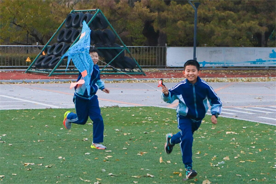 最令学生们兴奋的,是放鸢时刻。在专业场地,老师会指导学生根据风速调整放线力度。当亲手制作的风筝乘风而起,在蓝天中自在翱翔,学生们心中满是成就感。