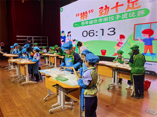 比赛形式涵盖小组合作、亲子合作、跨年级协作,兼具趣味性与实践性。学生自编自演的快板《劳动教育步步高》,传递出对劳动教育的理解与认同。整场大赛将动手实践能力、创新思维培养与传统文化传承有机结合,凸显劳动教育的综合育人价值。
