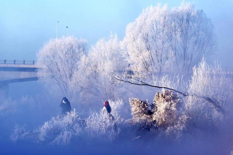 1月2日,朝阳市双塔区大凌河下游出现大面积雾凇。当日,清晨的大凌河畔,玉树琼枝、银装素裹的景象为新年开篇增添了一抹纯净而瑰丽的色彩;雪白的丛林中,忽有鸟儿飞过,雾凇片片随风散落,在阳光的映射之下,生机无限格外的赏心悦目,吸引着众多的摄影人和市民前往拍摄记录。(摄影:单国军 特约记者白铁军)