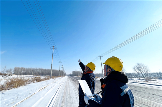 国网铁岭开原市供电公司八宝镇供电所师徒二人巡线路 供图 铁岭供电公司