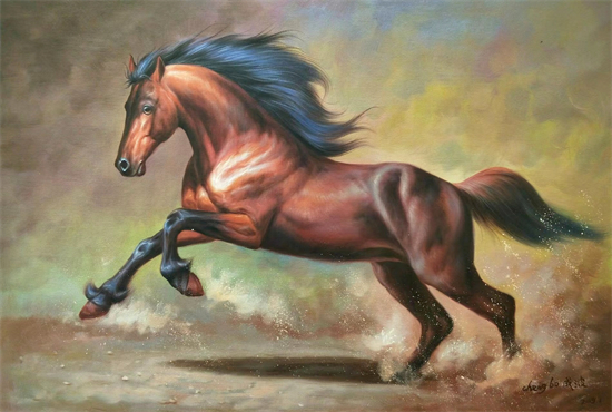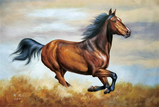 走进赵成波的画室,四幅奔马油画赫然映入眼帘。不同于传统水墨的写意留白,赵成波以油画技法为骨、东方审美为魂,通过细腻的光影处理与厚重的色彩铺陈,让每一匹马都充满了生命张力。