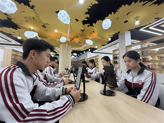 在区域整体布局推动下,全区中小学聚焦资源整合、模式创新、数字升级发力,打造特色鲜明的阅读育人体系。各校同步推进场景与技术双革新,推进图书馆智能化升级,引入智慧图书借阅系统,借助有声设备、线上平台、AI技术打破传统阅读壁垒,构建沉浸式多感官阅读体验,有效激发学生阅读兴趣与自主学习能力。