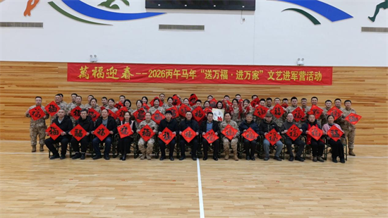 2026年新春佳节前夕,辽宁省锦州军分区携手市文联联合举办的“万福迎春——2026丙午马年送万福进万家文艺进军营”活动在锦州军分区举行。锦州市委宣传部副部长杨楠,锦州市文联党组书记、主席刘发友,辽宁省书协副主席、锦州市书协主席刘远武带领10余位书法家、民间艺术家走进军营,与官兵共迎新春。此次活动生动展现了军人矢志不渝的使命担当,传递出文化拥军的深厚情谊。