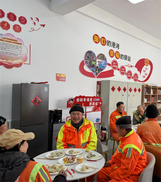 清晨,普兰店区各工会驿站内暖意融融。上午10时许,忙碌了一早晨的环卫工人、快递员、外卖骑手等户外劳动者陆续走进驿站,围坐在一起品尝热气腾腾的饺子。“天这么冷,能吃上一碗热乎饺子,心里别提多暖了!工会驿站就像我们的‘避风港’,小年也能感受到家的味道。”环卫工人王师傅一边吃着饺子一边笑着说。