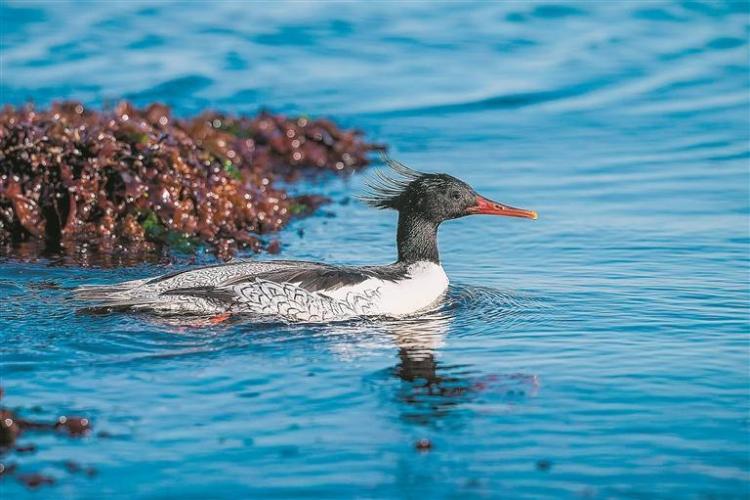 近日,一只国家一级保护动物,被誉为“鸟中活化石、水中大熊猫”的中华秋沙鸭时隔20多年再次现身大连海之韵公园附近海域。据大连野生动植物保护协会常务副会长谷国强介绍,目前全球中华秋沙鸭不足5000只,这只应该是迷鸟,大连不是该鸟的分布区。2005年,曾有只也是迷鸟的中华秋沙鸭出现在大连,可惜当时受伤,没来得及救治便死去了。这次出现的这只中华秋沙鸭非常健康,希望它能在大连海域待得长久些。(宗维春 张磊 记者石家家 孟颖摄影报道)