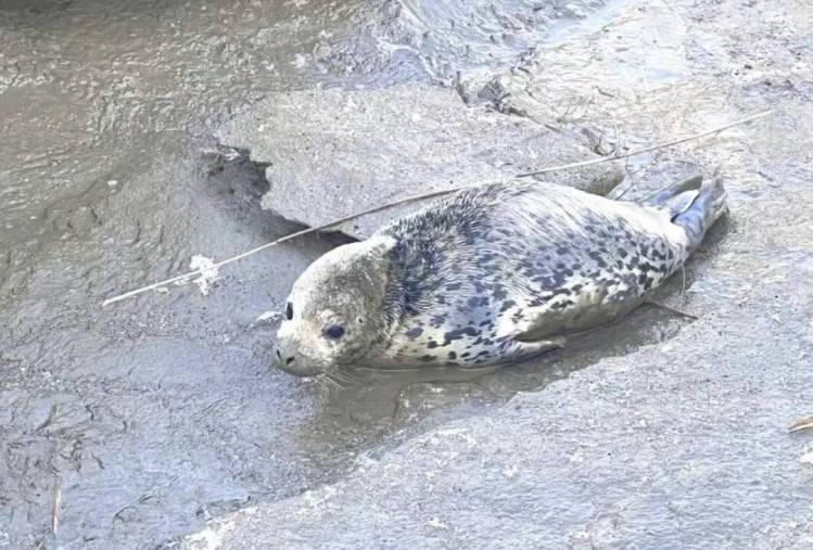 2月25日下午3点30分左右,东港市海洋与渔业行政执法大队接到群众报告称,在滨海大道丹东科技孵化示范基地对面海岸边,发现一只搁浅的斑海豹幼崽。