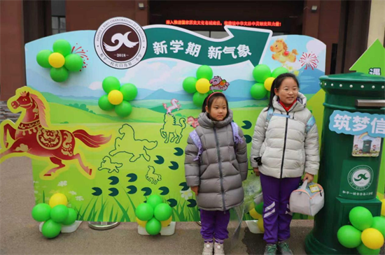 3月2日清晨,沈阳市和平一校长白岛第二小学校门前一面以“春启华章,马跃新程”为主题的展板格外醒目,展板上小马奔腾的图案生动活泼,象征着新学期的热烈开启。
