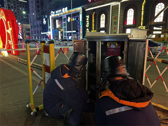 此外,今年的灯展吸引众多游客,周边的小吃摊也有用电需求。为保障摊位正常用电,国网铁岭供电公司安排专人对附近临时配电箱进行检查,记录设备运行情况。