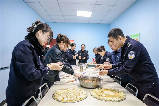 厨房内,党员志愿者与铁西区残联工作人员一同包饺子、煮汤圆、蒸玉米。没过多久,一碗碗香气四溢的饺子便端上了餐桌。
