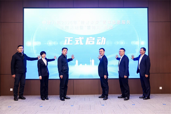 活动现场,与会嘉宾共同启动本次“建证未来”青年志愿服务主题活动暨“雷锋月”活动,并为中建八局志愿服务队代表授旗,标志着中建八局2026年学雷锋志愿服务系列行动全面开启。全体参会人员共同观看了2026年中建八局志愿服务启动视频《新的篇章》,直观感受八局青年志愿服务的初心与使命,见证志愿服务新征程的开启。