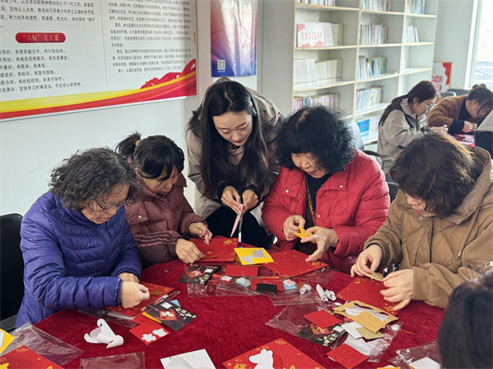 在辽滨街道公发社区“指尖织挂件 绽放‘她’力量”手工活动现场,女性居民们围坐在一起,学习织布挂件的制作步骤与技巧。从粘贴配色到拼接造型,大家一步步动手实践,时而低头专注创作,时而相互交流心得。指尖穿梭之间,色彩与布艺巧妙交织,现场欢声笑语不断。