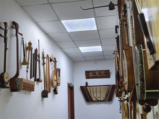 在营口大石桥市一间不足三十平方米的普通民居里,刨花卷曲如浪,堆满角落。墙上,形态各异的乐器静静悬挂——有的修长如弯月,有的方正若古匣。这是张恩东的工作室,也是他与五十余件乐器“孩子”共同生活的家。