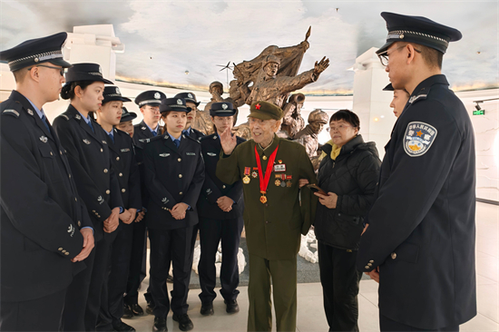 民警们聆听抗美援朝老兵回顾斗争历程 供图 沈阳出入境边防检查站