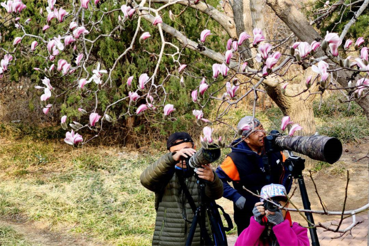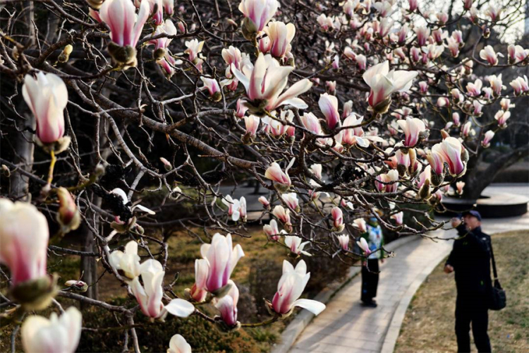 当日,大连市风和日丽,市区的最高气温来到16℃附近,刷新今年以来的新高。随着气温回升,大连市劳动公园内的玉兰花吐露芬芳、相继绽放,洁白玉兰与粉嫩花苞缀满枝头,为春日增添一抹亮色,吸引不少市民驻足观赏,用手机、相机定格春光,感受春日生机。(摄影:特约记者 刘德斌)