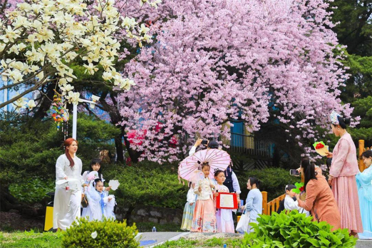 4月17日,丹东市第三幼儿园“樱韵花开·寻迹花神”第十一届樱花节亲子游园活动温情启幕,全园幼儿与家长携手相伴,在烂漫春光中赴一场传统文化与亲子温情的美好之约,让中华优秀传统文化在童真岁月中悄然浸润。